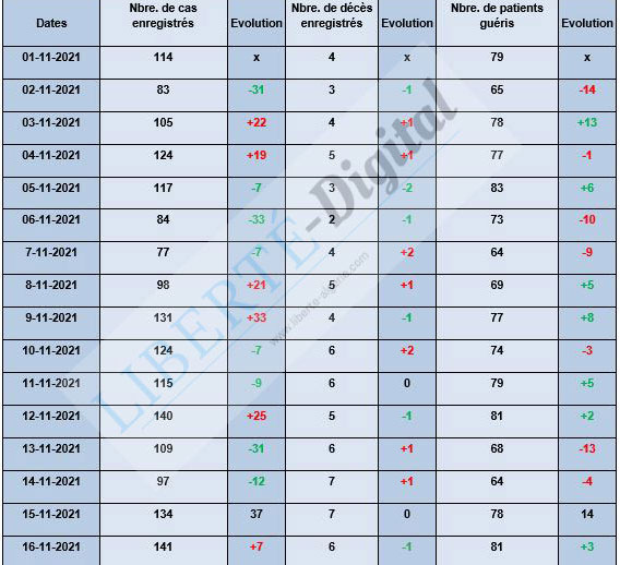 Évolution de la pandémie en Algérie du 1er au 17 novembre 2021